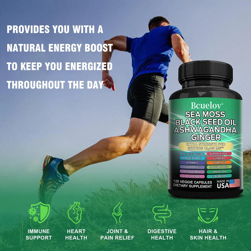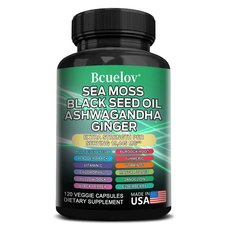 Black Cumin Seed Oil Vitamin C Mineral Supplement, Ashwagandha, 19445 mg, Supports Thyroid Health, Immune System, 120 Capsules