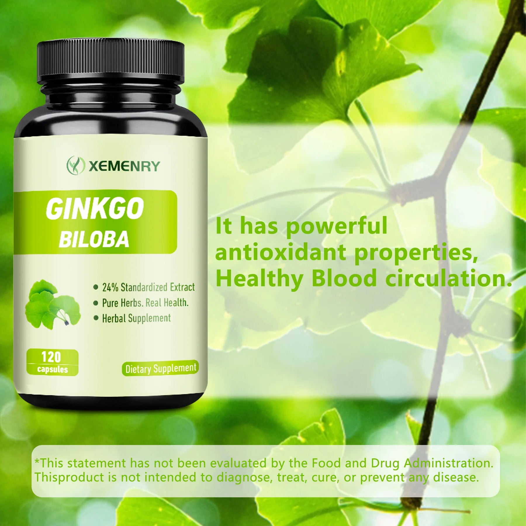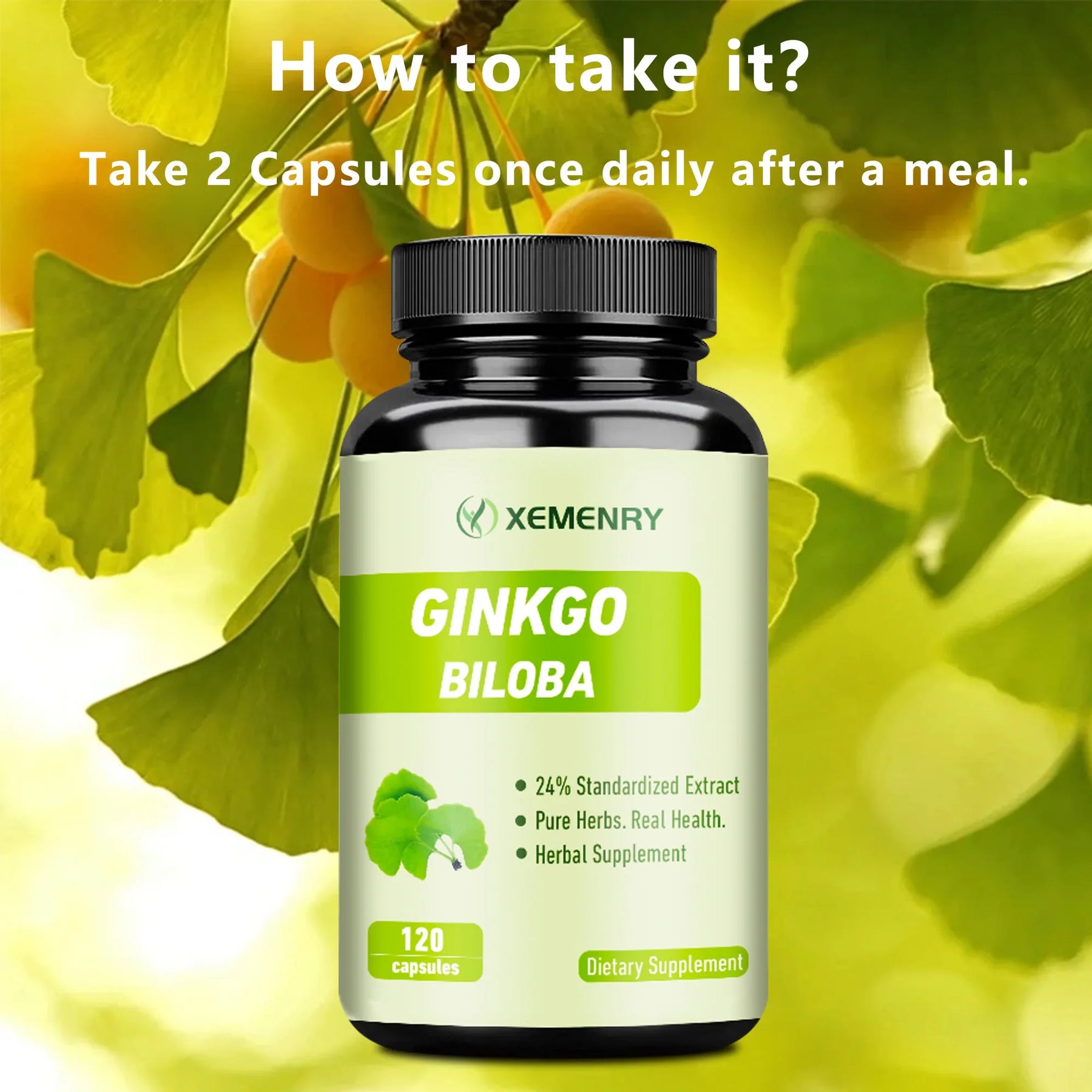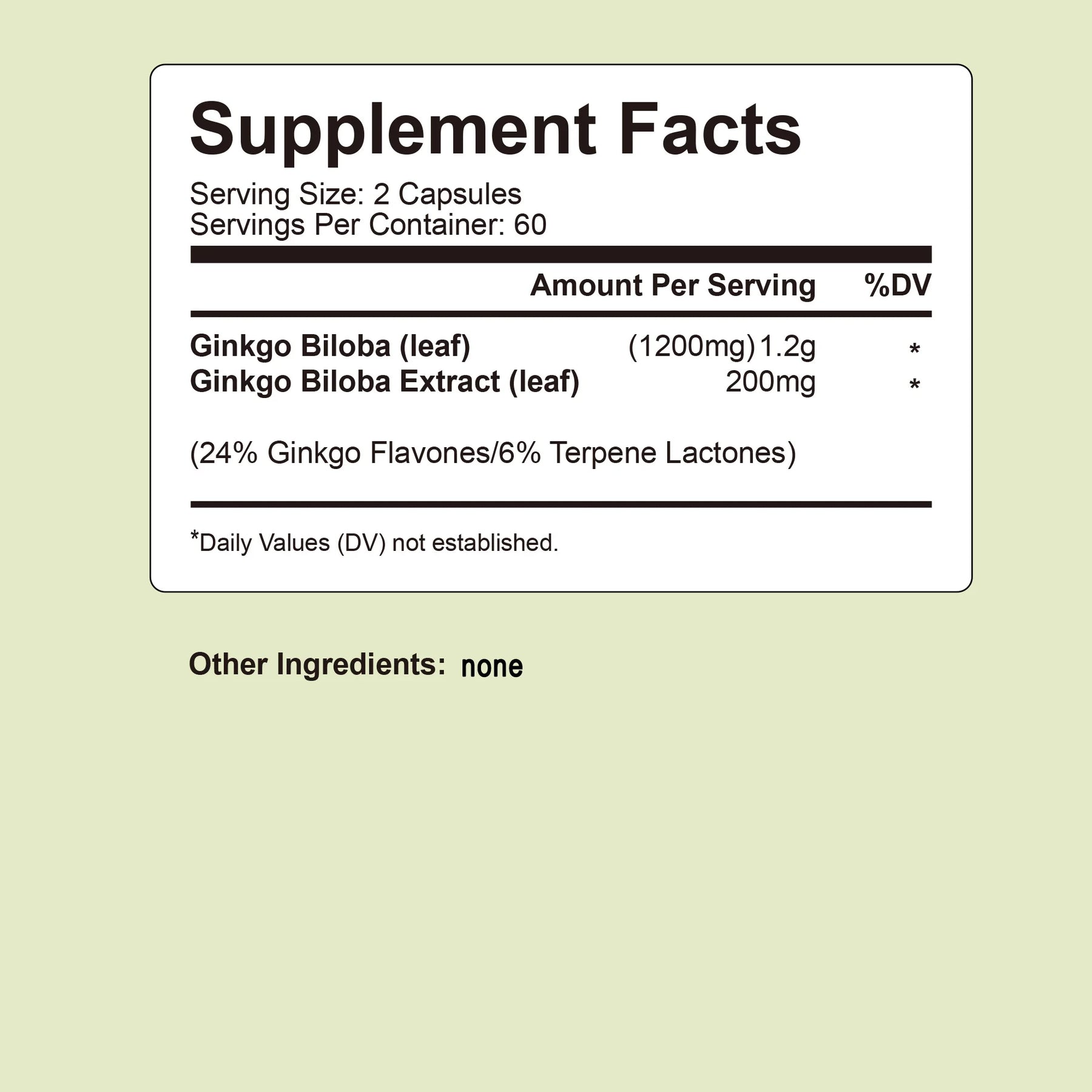 Ginkgo Biloba Capsules - Improves Concentration, Memory and Learning, Promotes Brain Health - 120 Capsules
