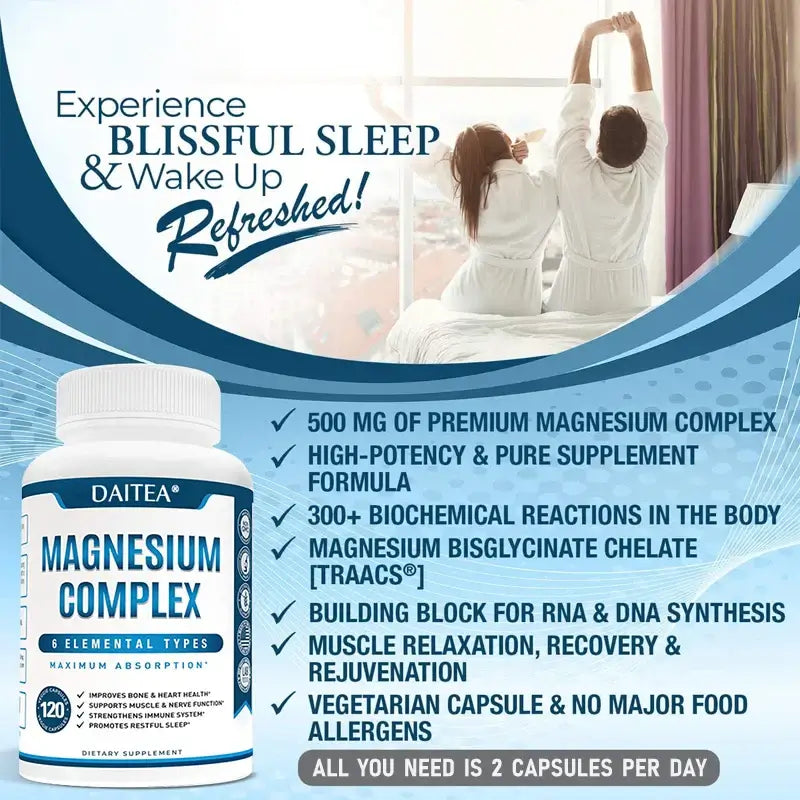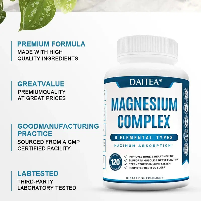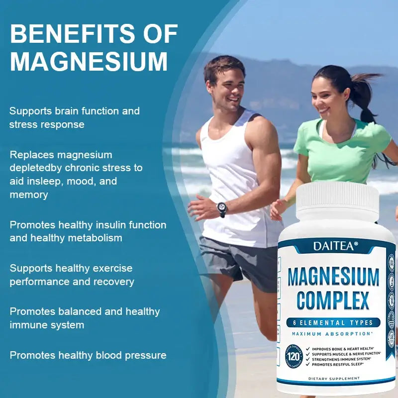 This magnesium complex supplement helps reduce fatigue, promote energy metabolism, and support overall cardiovascular and bone health. Designed for both men and women, High Absorption Magnesium Complex Capsules ensure your body receives the essential magnesium it needs every day.