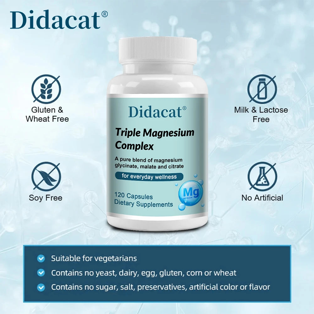 Magnesium Glycine, Malate & Citrate Capsules – Muscle, Bone, Cardiovascular & Nerve, Highly Absorbable, Triple Magnesium Complex
