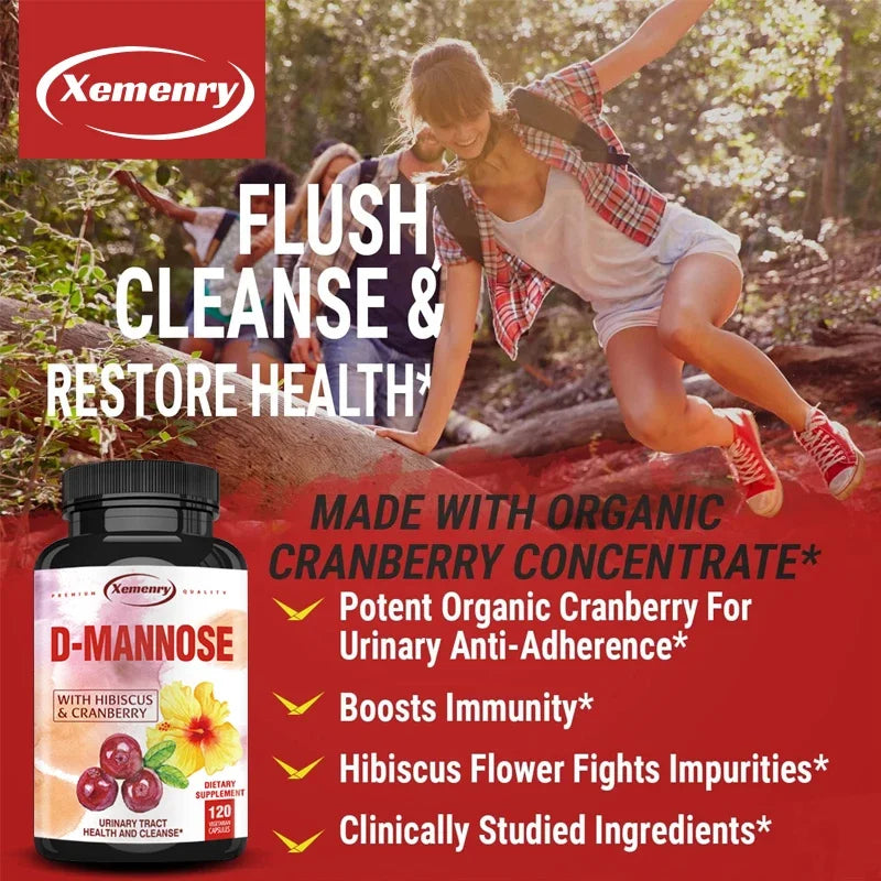 Mannose Capsules Urinary Tract Health Formula Organic Cranberry Fruit Powder and Hibiscus Healthy Bladder, Rapid Detoxification