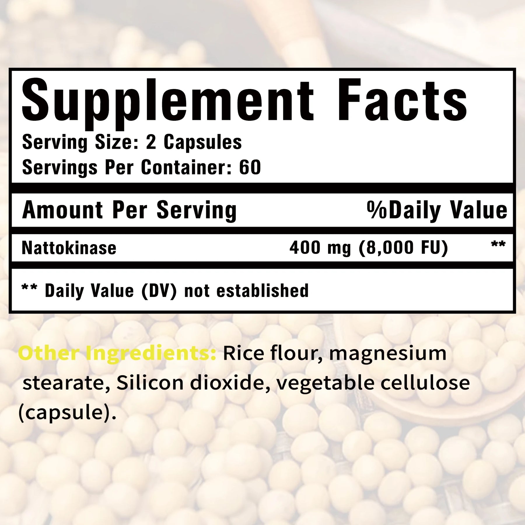 Nattokinase Supplement - Promotes Blood Circulation, Heart and Blood Vessel Health - 120 Capsules