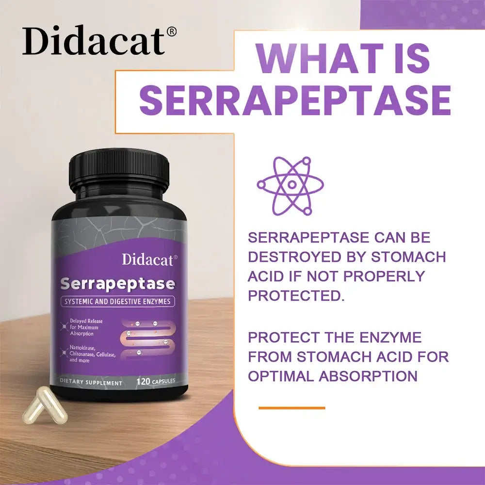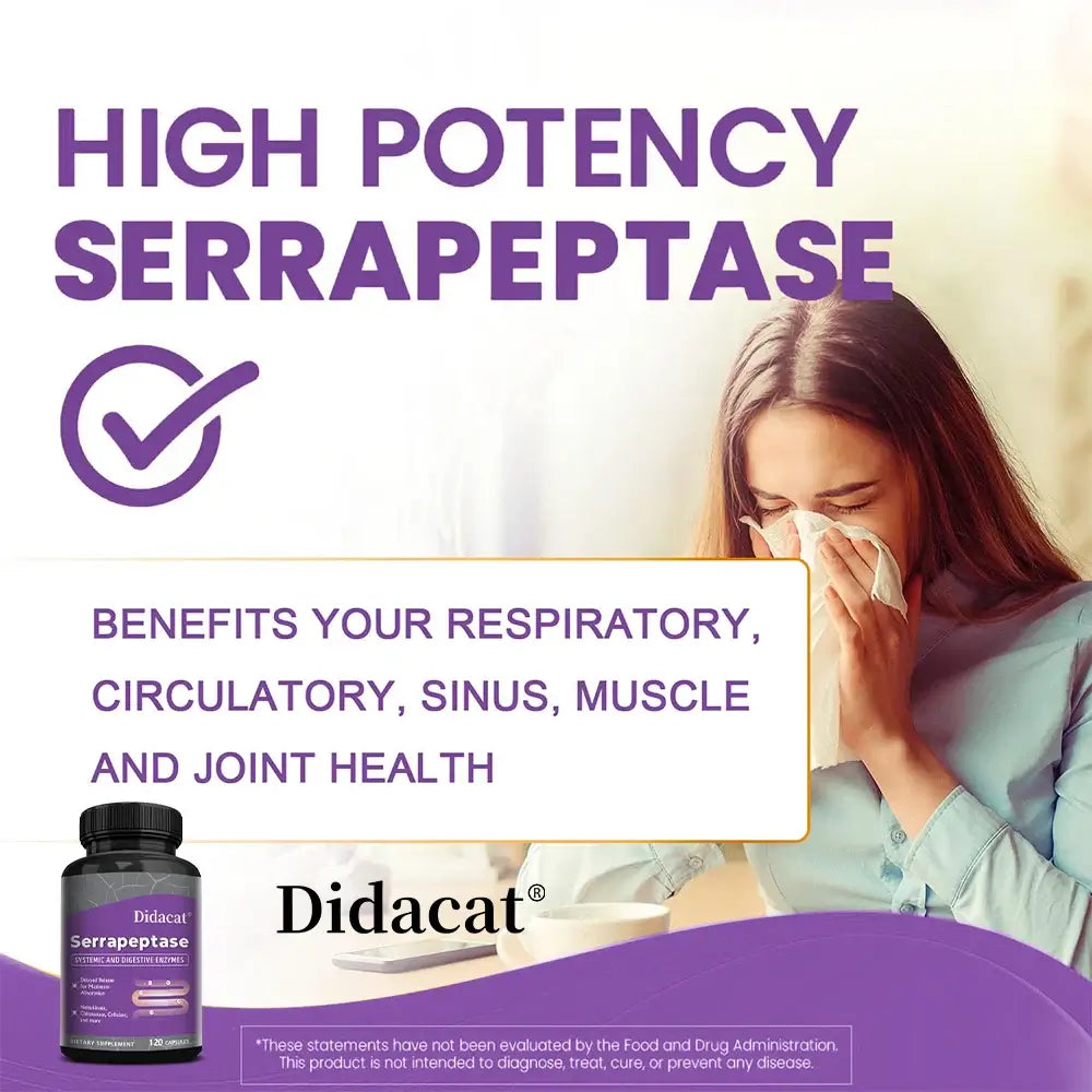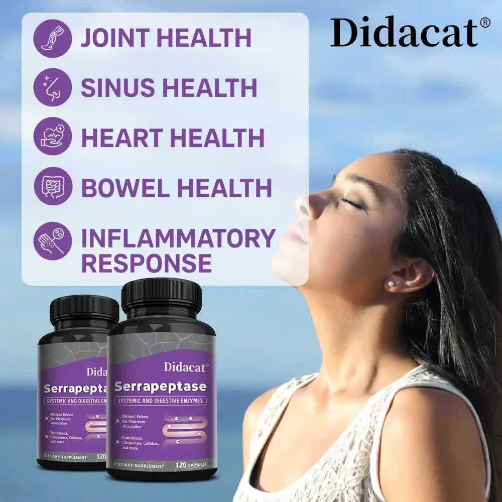 Serrapeptase - with Digestive Enzymes, Nattok offers powerful, natural support for your heart, joints, and overall body balance. This advanced formula combines high-potency Serrapeptase, a protein-digesting enzyme known for its anti-inflammatory properties. This powerful Serrapeptase supplement aids in reducing swelling, supporting sinus function, and improving flexibility and mobility.