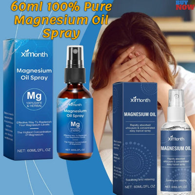60ml 100% Pure Magnesium Oil Spray Non-GMO Relieve Muscle Body Pain Smoothes&Softens Skin For Better Sleep Quality