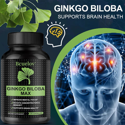 Ginkgo Biloba Capsules - Improves Concentration, Memory and Learning, Promotes Brain Health - 120 Capsules