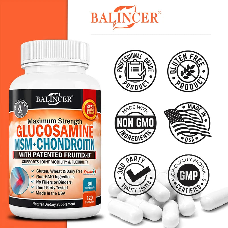 Glucosamine Chondroitin Capsules - Support Stress Relief Bone and Joint Inflammation Management Immune Health