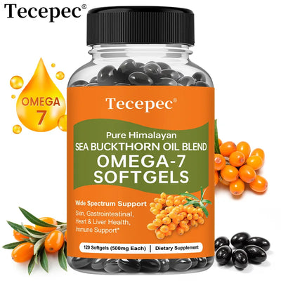 Organic Sea Buckthorn Oil Anti-Aging Capsules, 32% Omega-7 To Precisely Reduce Wrinkles, 25% Omega-9 To Restore Skin Elasticity